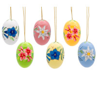Baumbehang Ostereier mit Blumenmotiven, 6-teilig, 35 mm