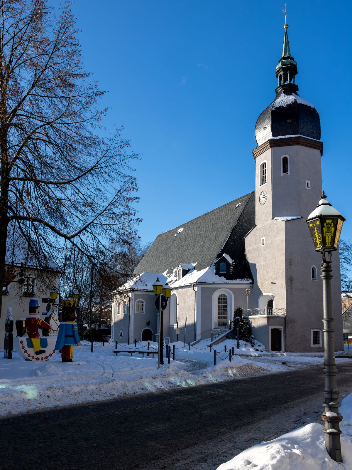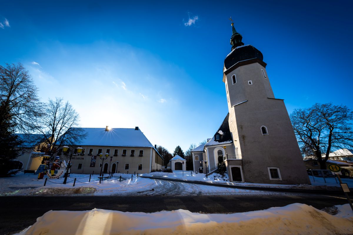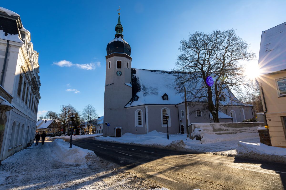 Hier ein paar Fotos von der Stadtirche Olbernhau und dem Marktplatz - fotografiert im Januar 2026: