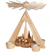 Teelichtpyramide Seiffener Dorf mit Kurrende natur